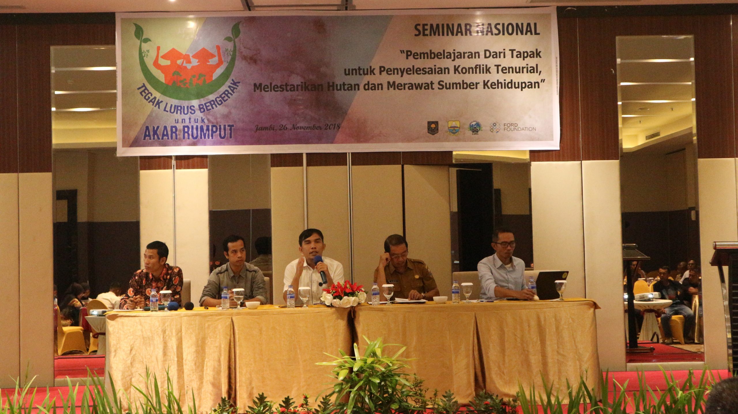 Tanggal 26 November 2018, bertempat di Hotel Aston Jambi, dilaksanakan Seminar Nasional berjudul “Pembelajaran Dari Tapak untuk Penyelesaian Konflik Tenurial, Melestarikan Hutan dan Merawat Kehidupan”. Seminar Nasional ini dihadiri 65 peserta dari unsur Pemerintah Pusat dan Daerah, Perusahaan pemegang konsesi kehutanan, Lembaga Swadaya Masyarakat (LSM), Masyarakat dan Media cetak-elektronik. Seminar Nasional ini dilaksanakan oleh Yayasan CAPPA Keadilan Ekologi didukung oleh Kementerian Dalam Negeri