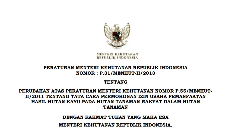Peraturan Menteri Kehutanan Republik Indonesia Nomor : P.31/MENHUT-II/2013