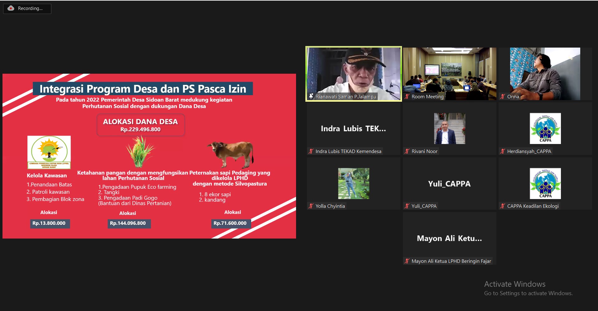 Selasa 22 Maret 2022, Yayasan CAPPA Keadilan Ekologi melaksanakan kegiatan Workshop “pembelajaran integrasi program Perhutanan Sosial dan Program Desa untuk memperkuat pembangunan Desa berbasis pengelolaan sumber daya alam berkelanjutan” kegiatan ini dilaksanakan secara hybrid (virtual dan faktual) yang diikuti oleh KPS di Provinsi Jambi dan Sulawesi Tengah.